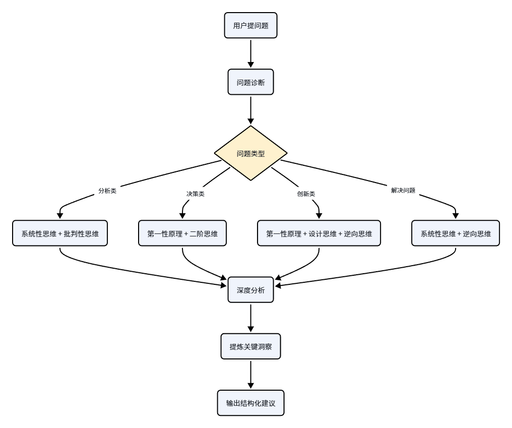 - 整体架构:8种思考方法,自动匹配