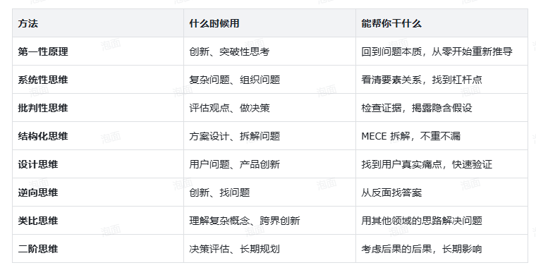 ✅ 8种成熟的思考方法论,覆盖大部分场景