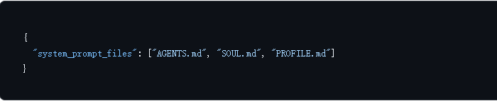 你也可以直接修改智能体配置文件(~/.copaw/workspaces/{agent_id}/agent.json)中的 system_prompt_files 字段来管理人设文件的加载: