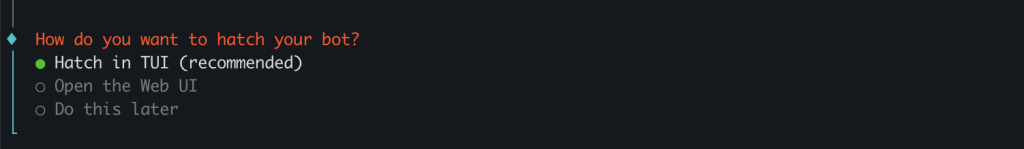 – Hatch in TUI (recommended):在终端里直接进入交互