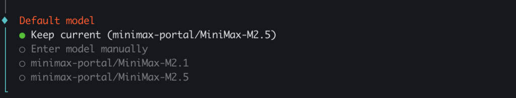 选择默认模型 MiniMax-M2.5